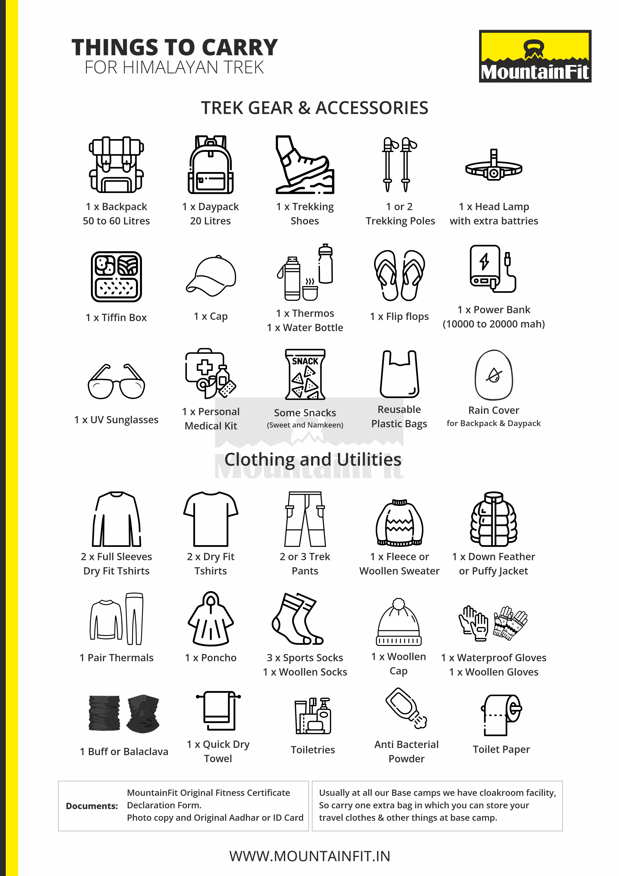 - Clothing of personal nature like trek shoes, kit bags, day packs, down jackets and other special clothing etc. (You can rent out from us)